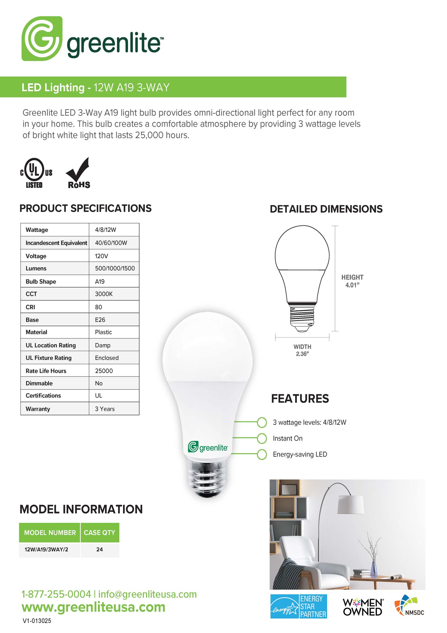 | Model # | 12W/A19/3WAY/2 |
