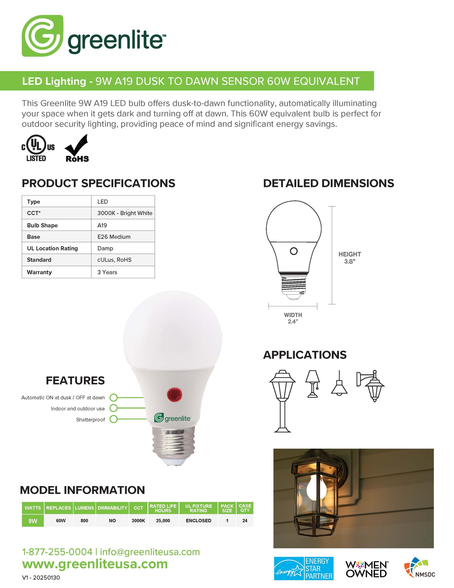 With its dusk-to-dawn sensor and damp location rating, this LED bulb is ideal for porch and entryway lighting. With no additional hardware and just the twist of a bulb into an existing socket, your standard fixture suddenly becomes as Smart fixture that senses ambient brightness for dusk-to-dawn capability.